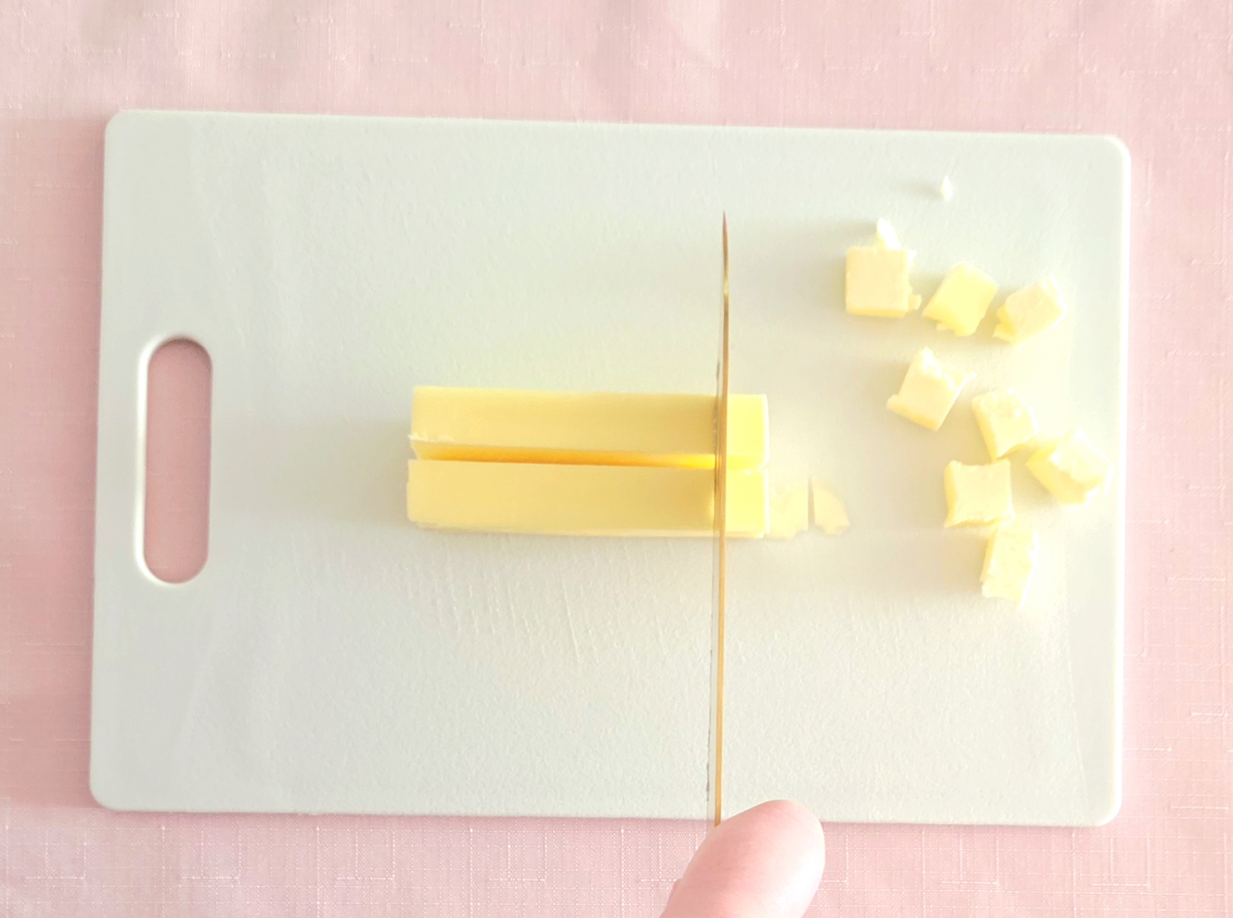 2. Cut the cold butter into ½ inch chunks and place it back in the fridge to keep it cold until you need it.