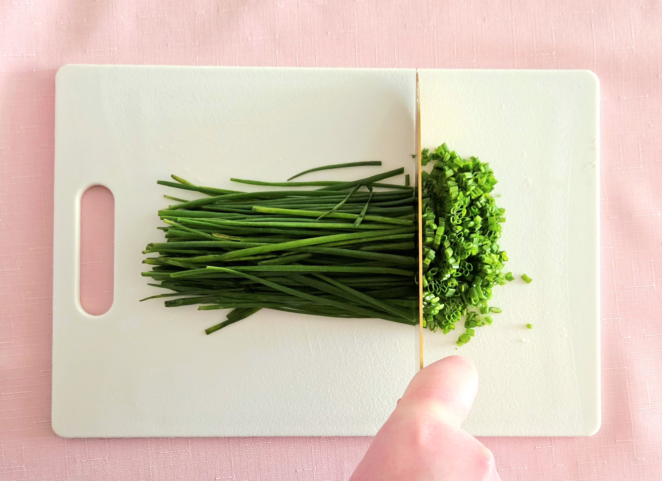 Mince the chives, and place them in the fridge to stay cold. If you’d rather use freeze dried chives, then of course skip this step, but be warned! Dried chives wont be nearly as potent as the fresh stuff, so the onion flavor will be dimmed. Still delicious, just a bit more bland.
