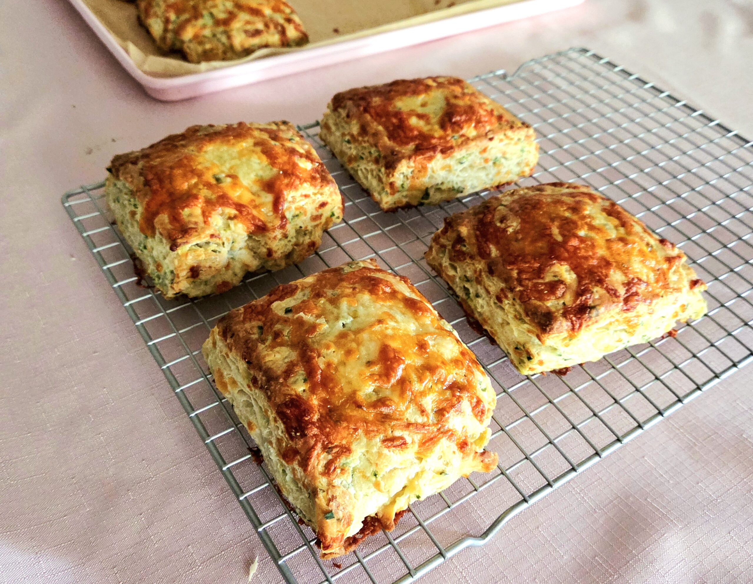 9. Transfer the hot biscuits over to a cooling rack. Once the biscuits are cool enough to touch, dig in and enjoy! Keep any leftover biscuits stored in an airtight container in the fridge for up to 2 days.