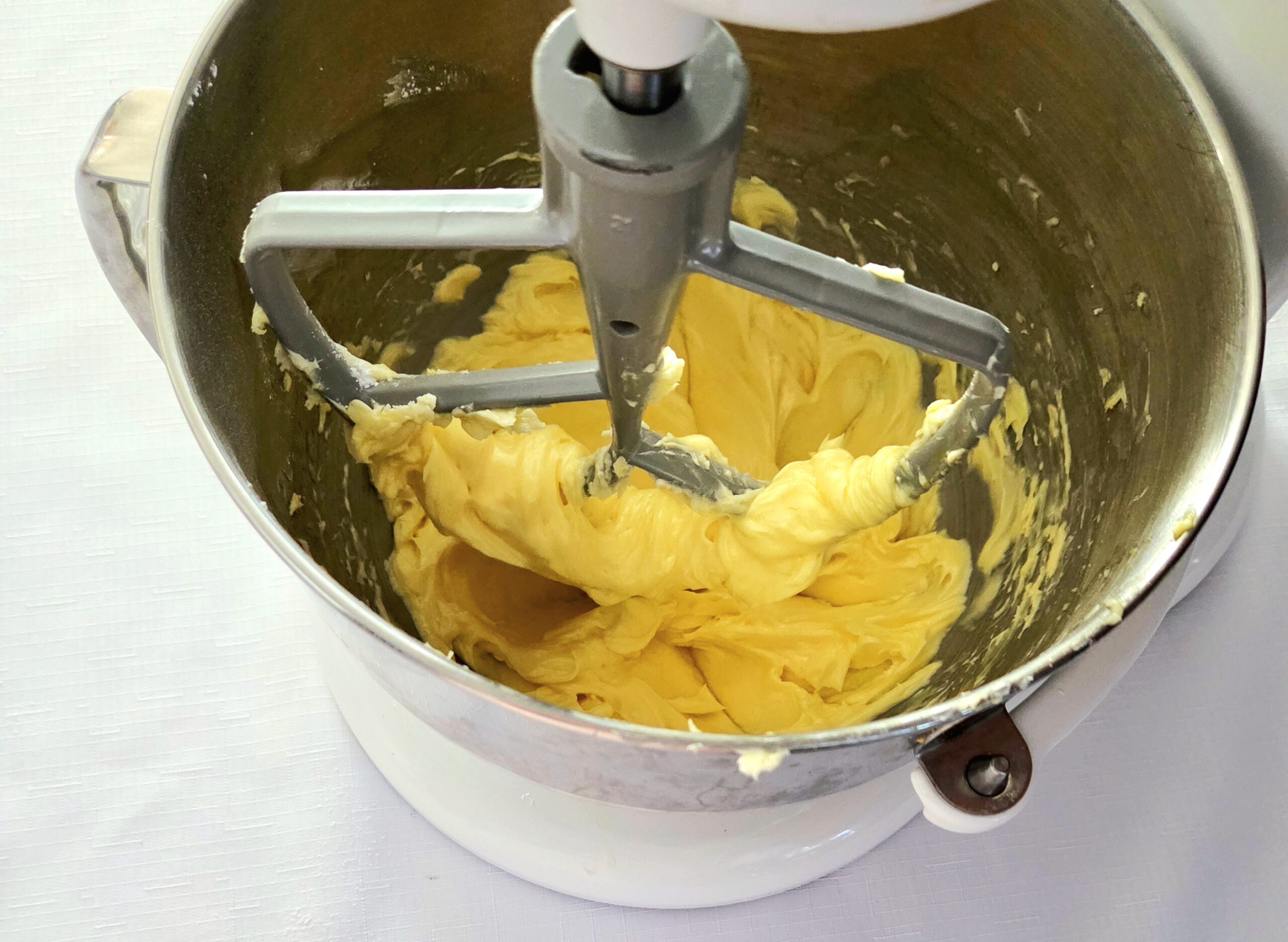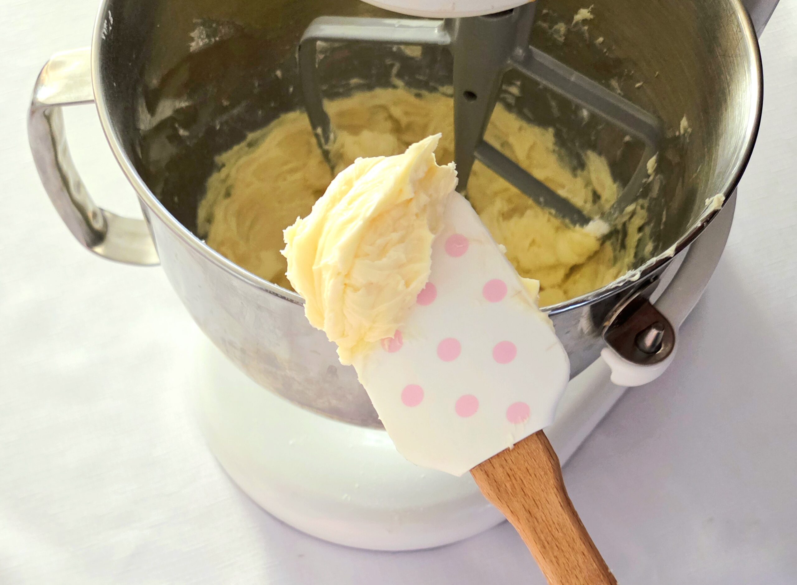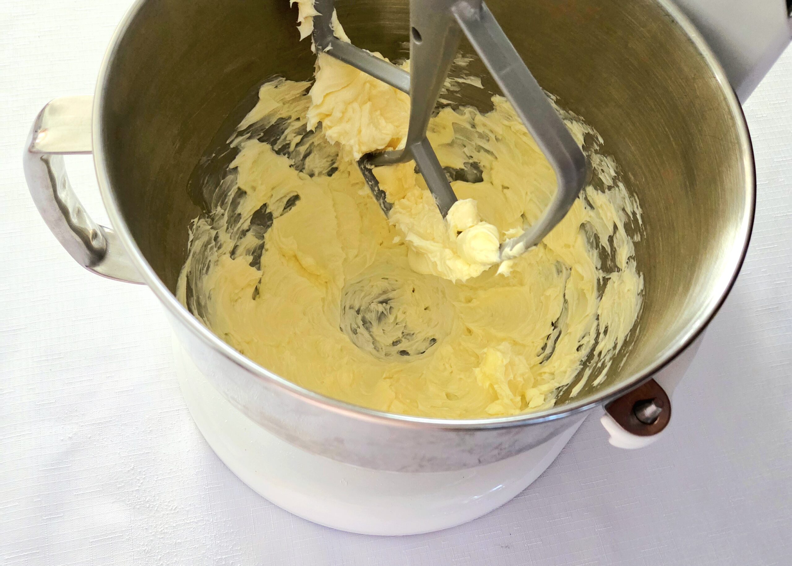 - In the bowl of a stand mixer using the paddle attachment, cream together the softened butter and sifted powdered sugar. Start slow, on level 1, until the sugar has been absorbed by the butter. Increase to level 3 or 4 to finish creaming for 3-4 minutes, until it’s airy and creamy.