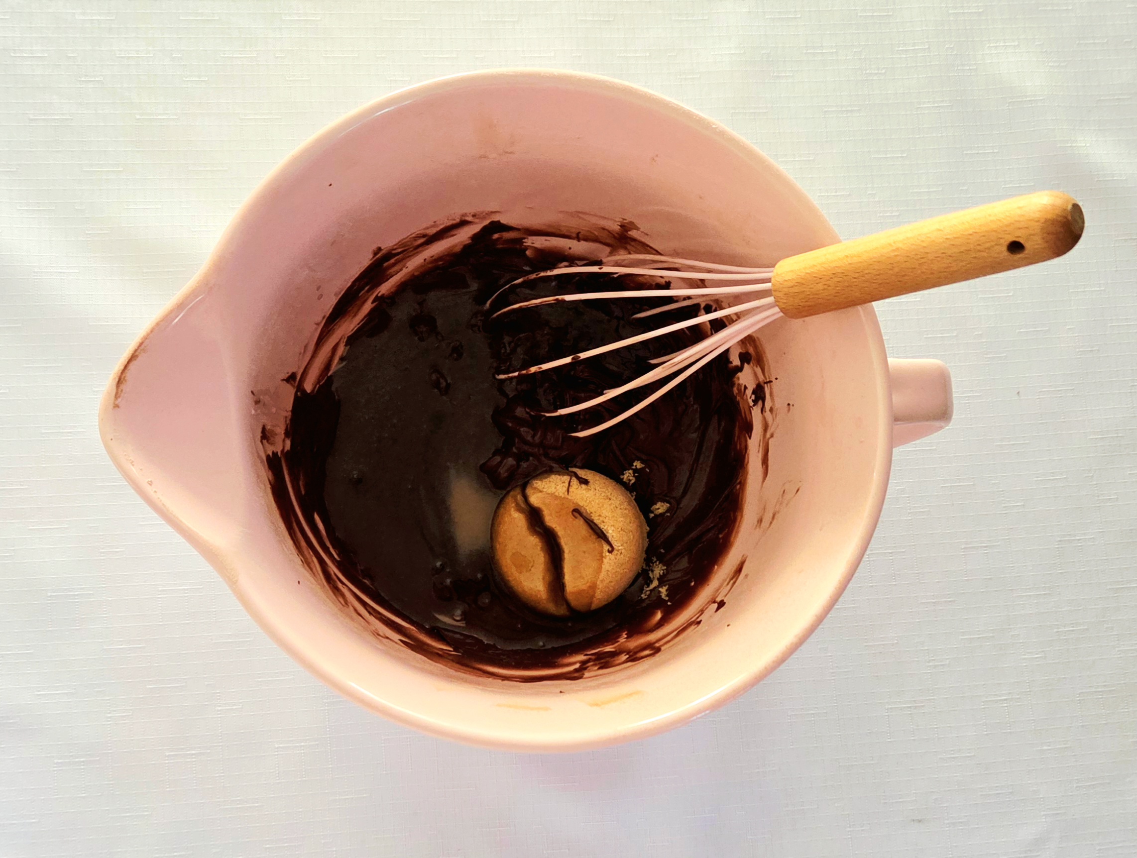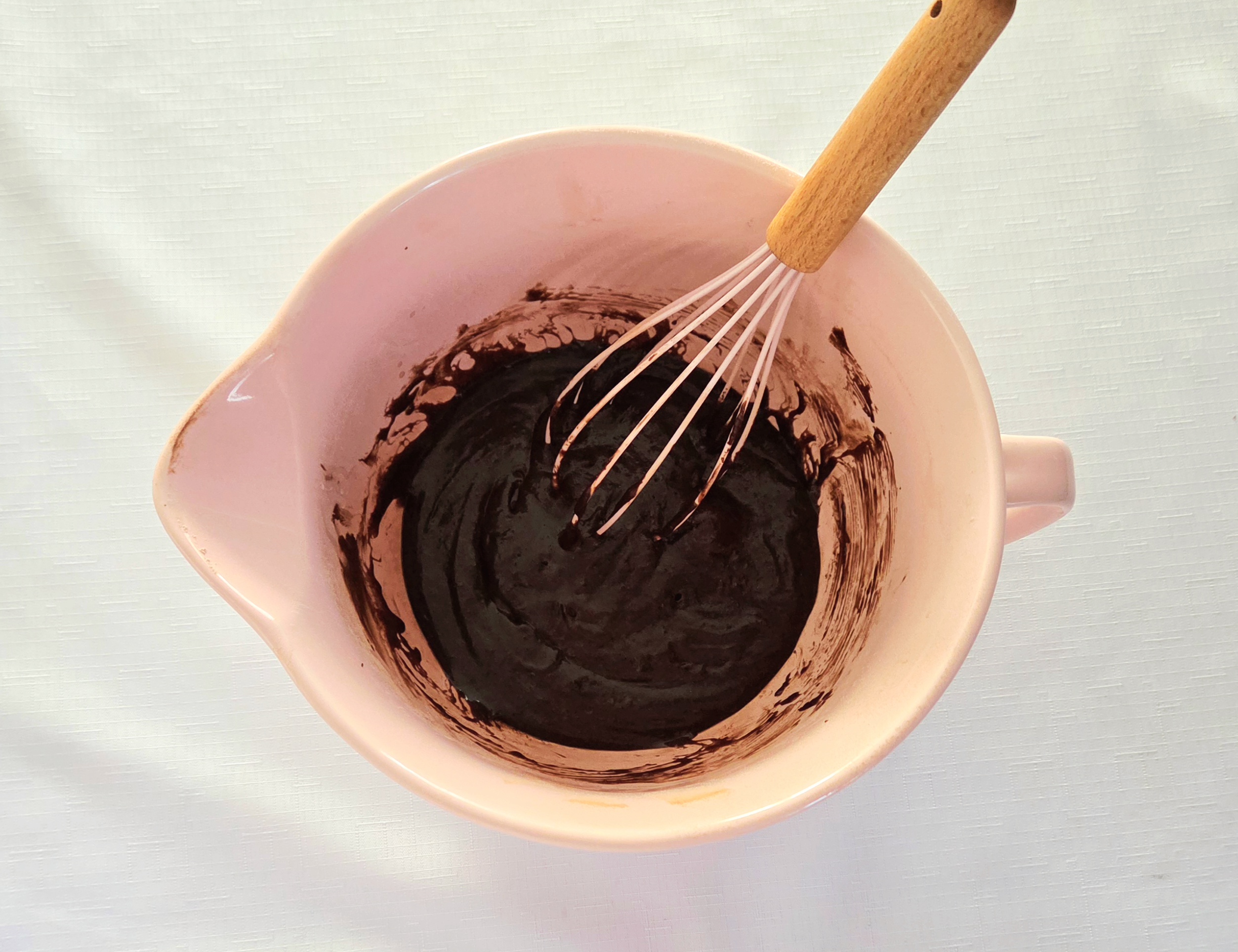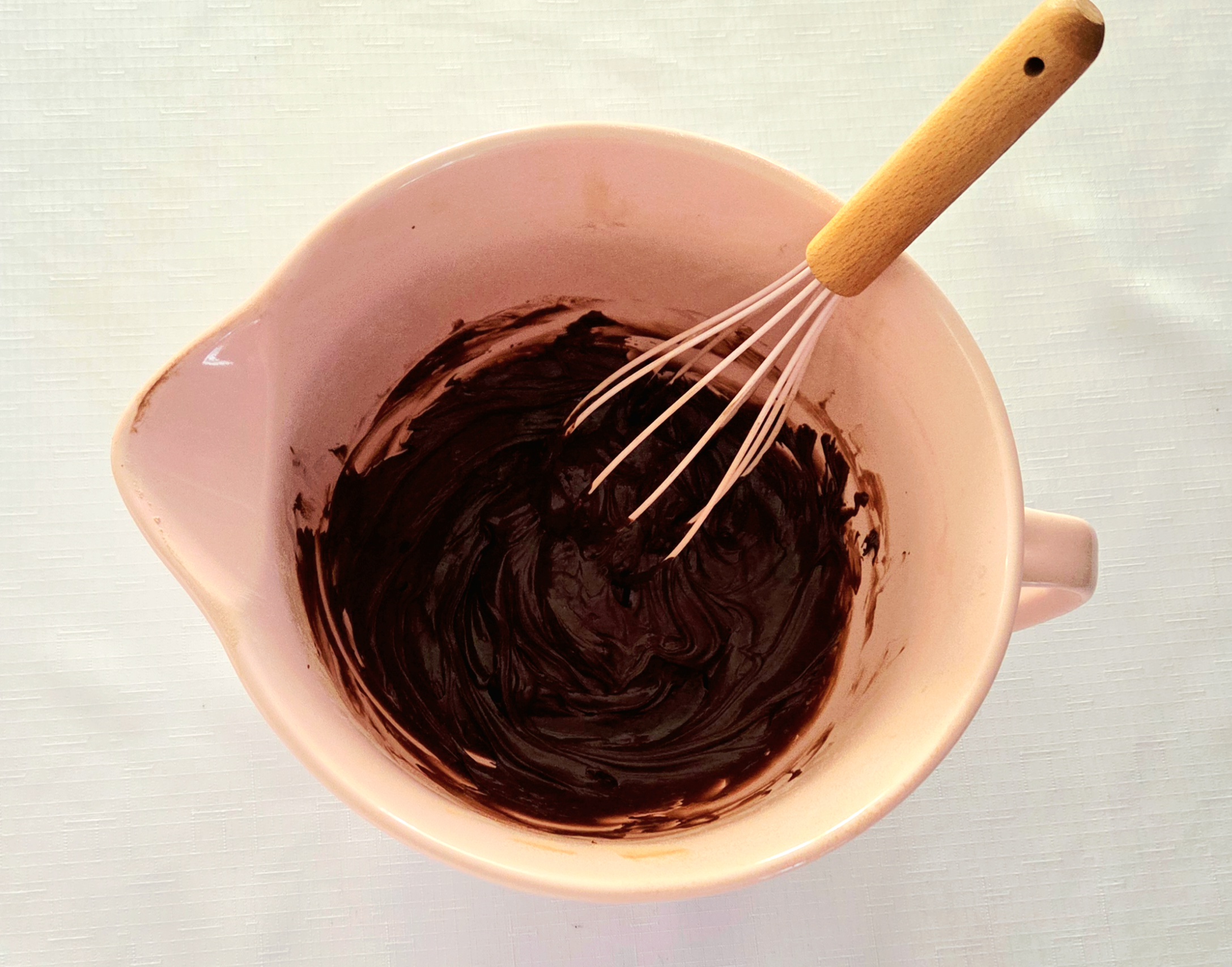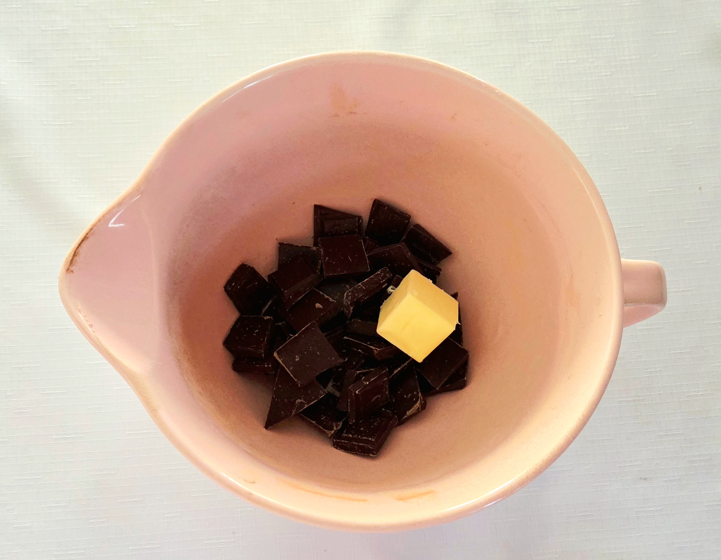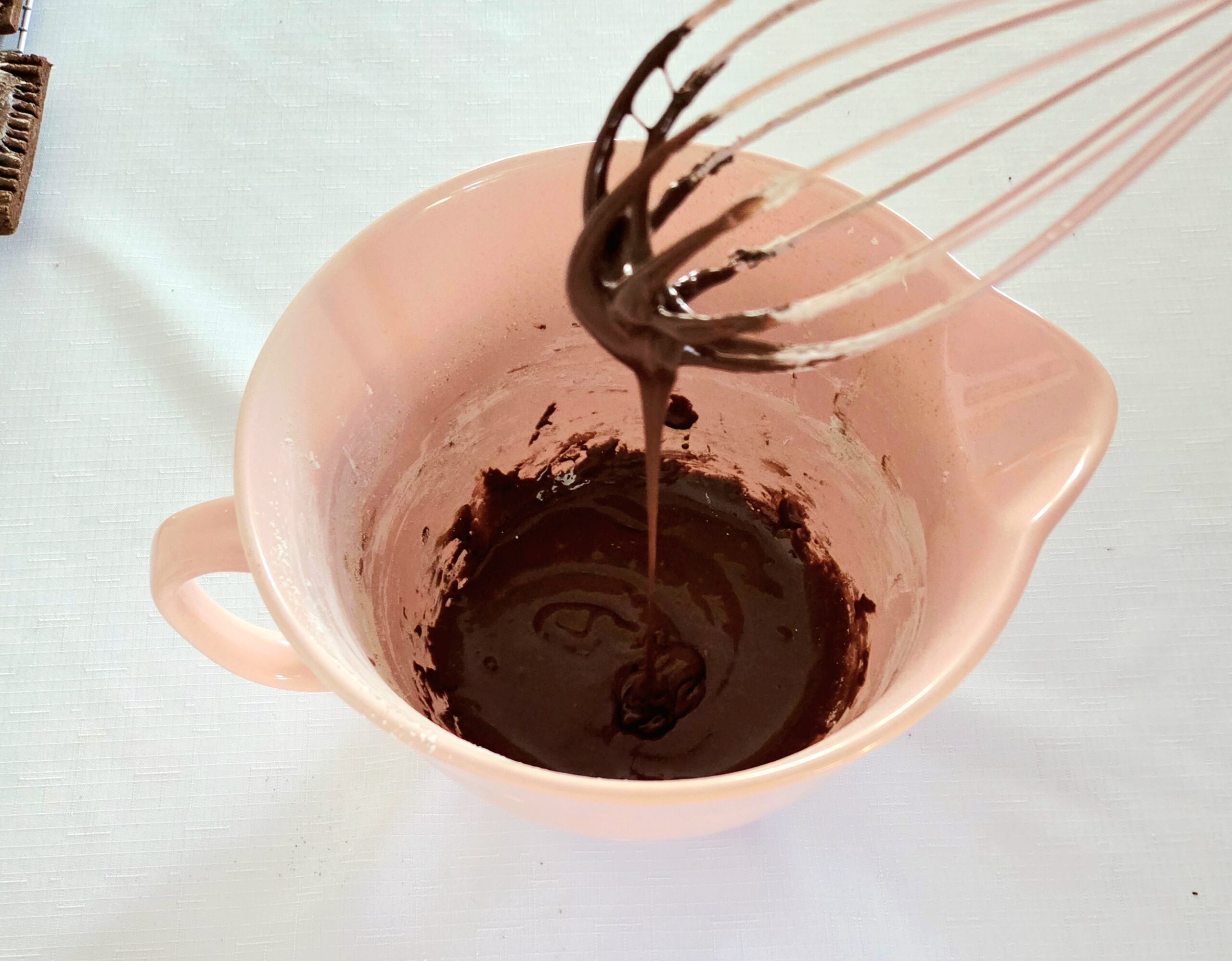 - While the dough is chilling, prepare the filling. In a medium microwave-safe mixing bowl, melt together the butter and dark chocolate in 30 second increments, whisking in between each.