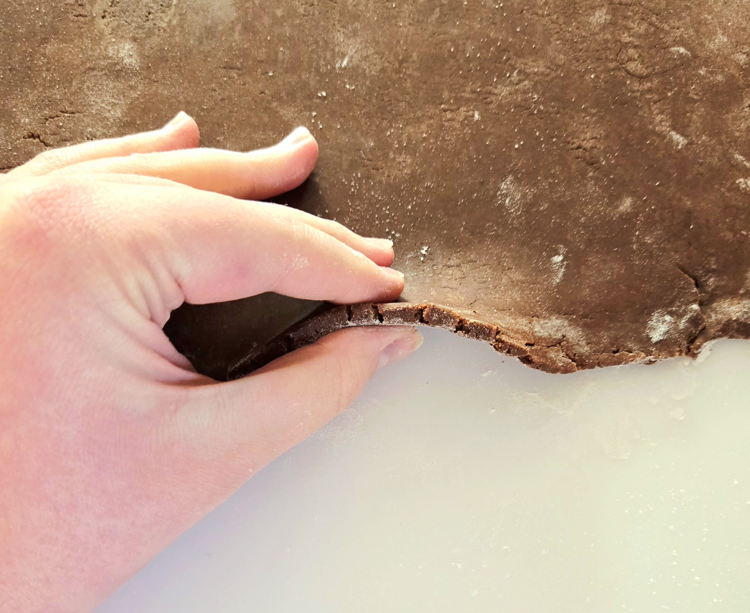 Lay out a large sheet of plastic wrap and dump the dough into the middle of it. Gently press the dough into a large square, around 1-inch in thickness. Tightly wrap it in the plastic wrap so it’s airtight. Place the dough on a flat surface in the fridge, and allow the dough to chill for a minimum of 1 hour. This can be done up to 2 days in advance, just note that the longer it chills, the firmer the dough will get. It may need to sit out for 15-20 minutes if it’s been in for longer than a few hours, to make it easier to roll out.