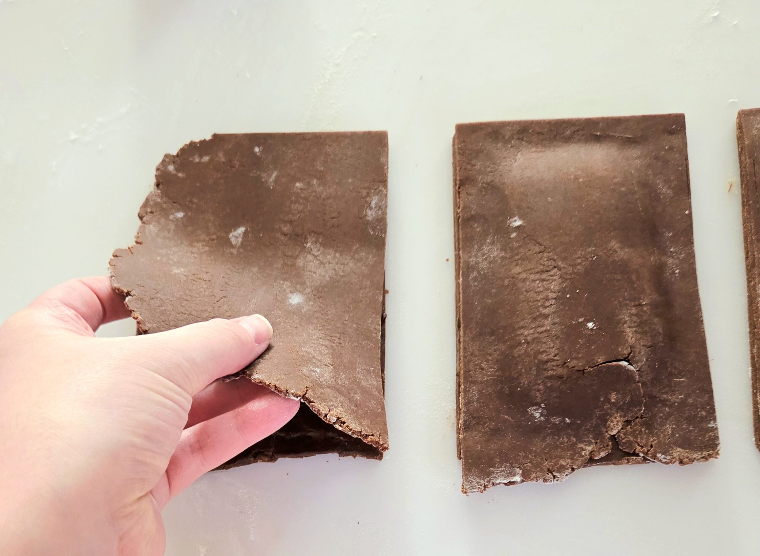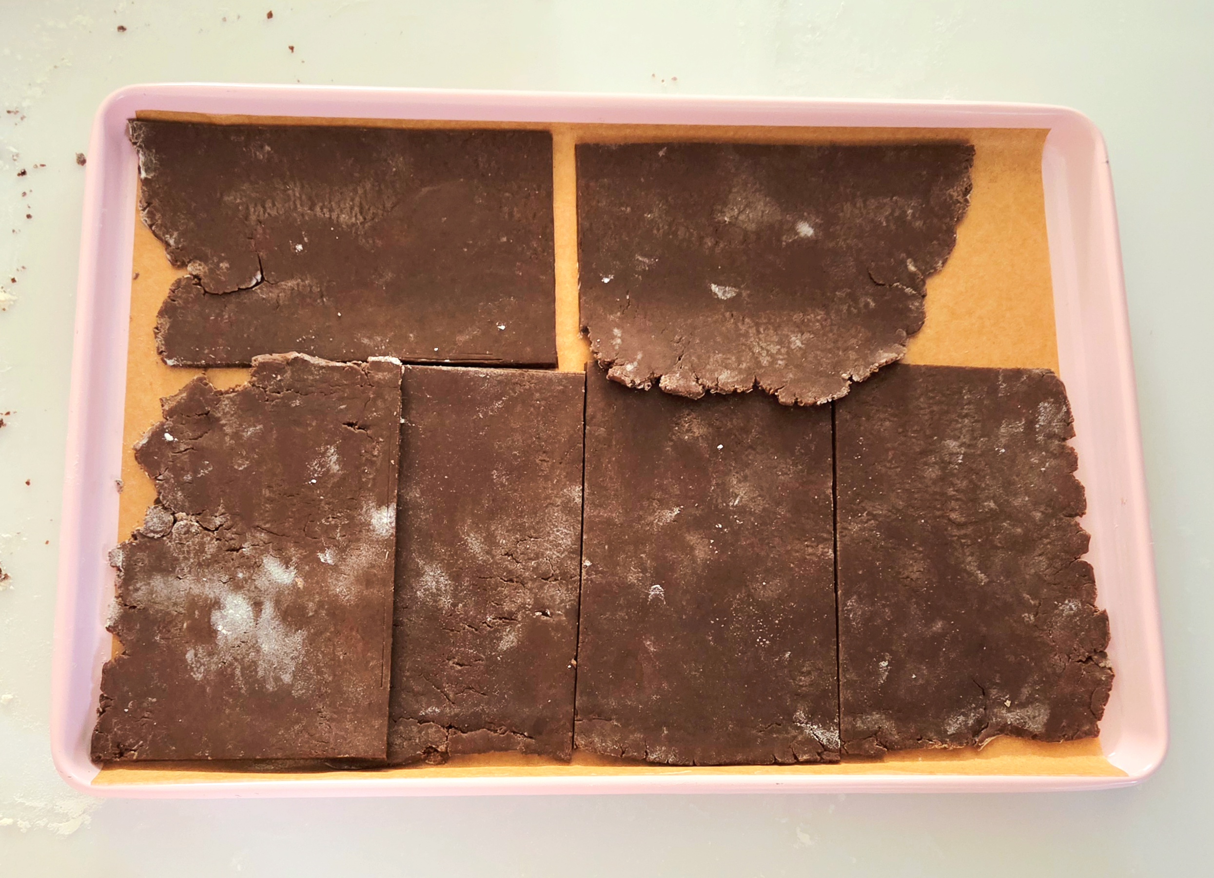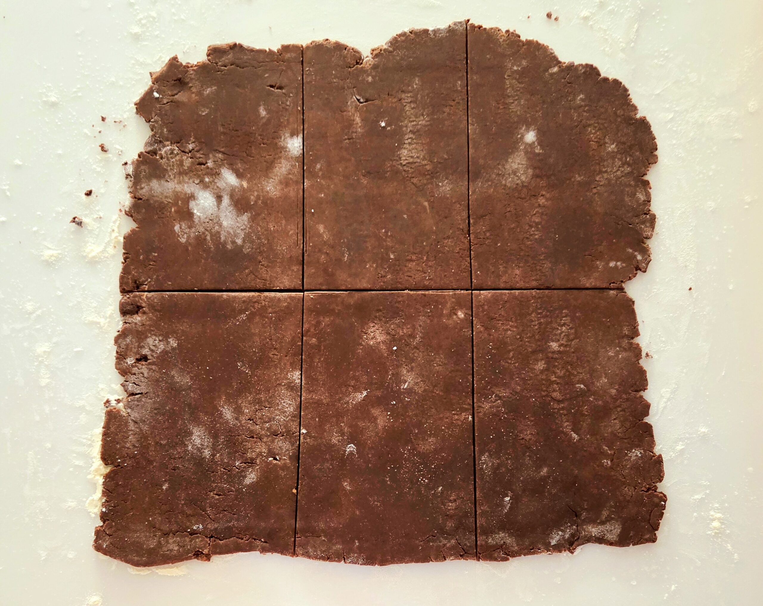 - Place the 6 rectangles on one of the lined baking sheets, cover them in plastic, and place them in the fridge for 15-30 minutes. While they chill, repeat the process with the second half of the dough, using the other lined sheet pan for the second set.