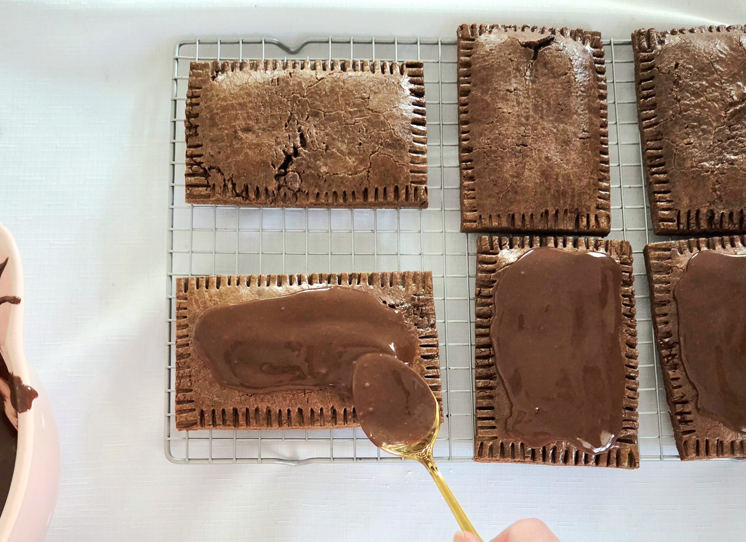 - Using a spoon, spread around 2-3 tablespoons of glaze on each pop tart. If you’d like sprinkles, add them immediately or they wont stick.