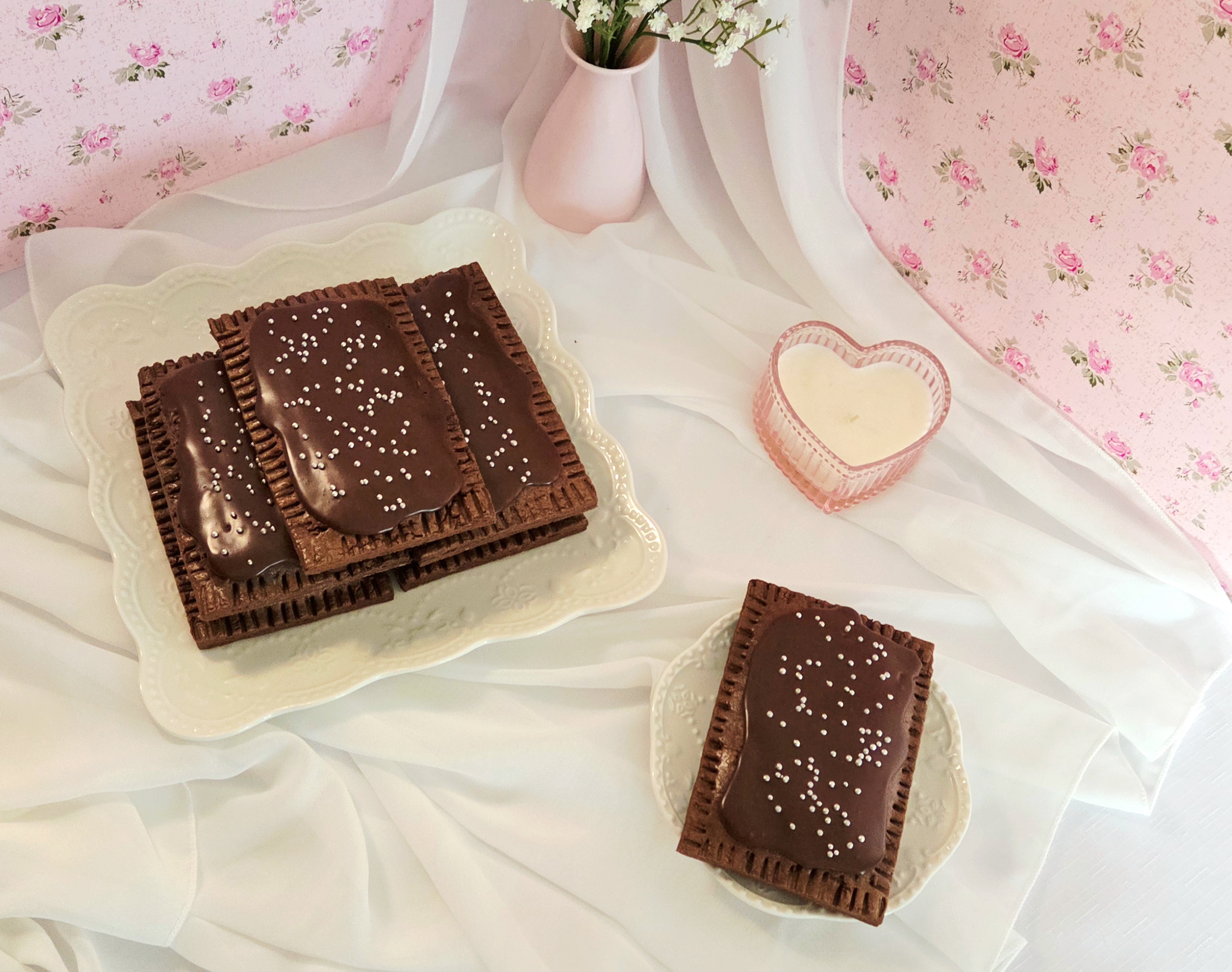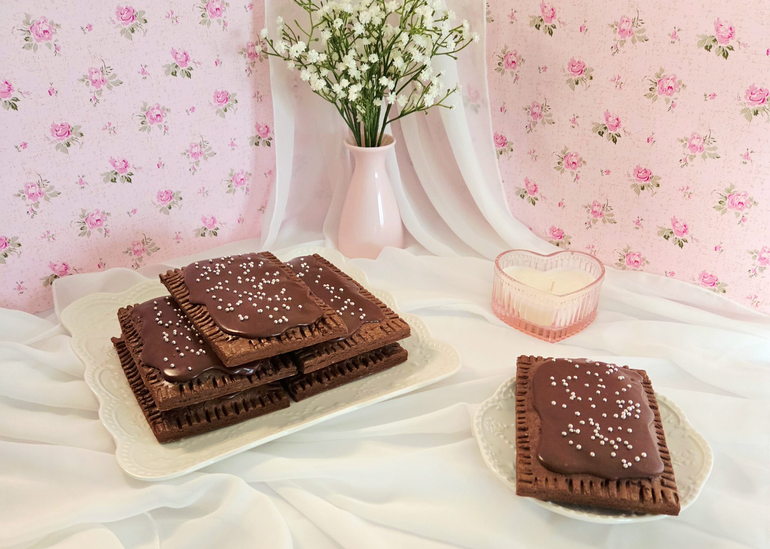This copycat recipe uses a chocolate tart dough. It’s soft yet strong enough to hold its shape, a little bit crumbly, and comes together just as easily as cookie dough. The filling is gooey, fudgey, and chocolatey, the perfect mouthfeel and just the right texture to stay inside the dough as it bakes. The frosting is a basic powdered sugar based glaze, so an easy ending to a tasty labor of love. And of course, some sprinkles to garnish for that classic whimsical Pop Tart look.