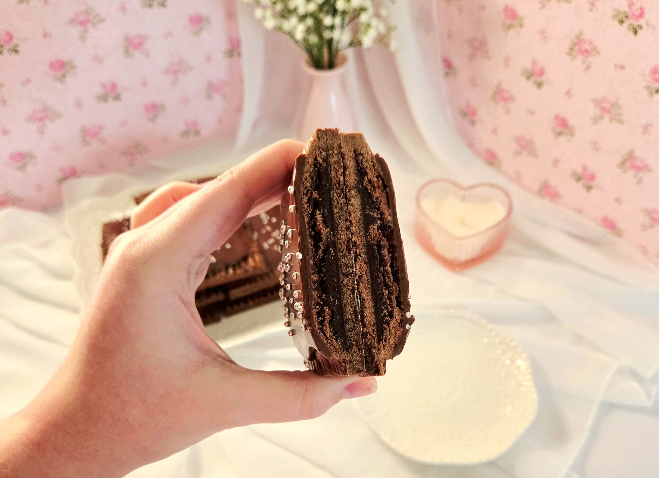 This is a long one, so buckle up! But trust that it’s worth the effort. Start by making the dough, it needs to chill for a while before getting rolled out. In a medium mixing bowl, sift the cake flour and cocoa powder, and whisk them together along with the salt. Set this bowl aside.
