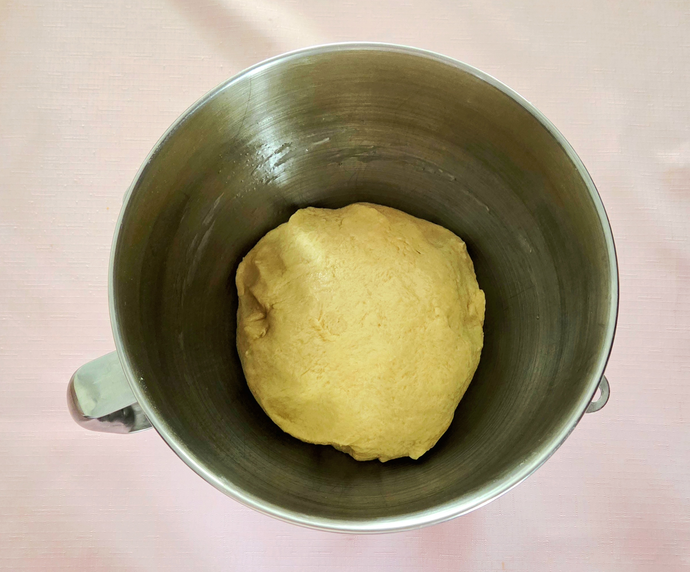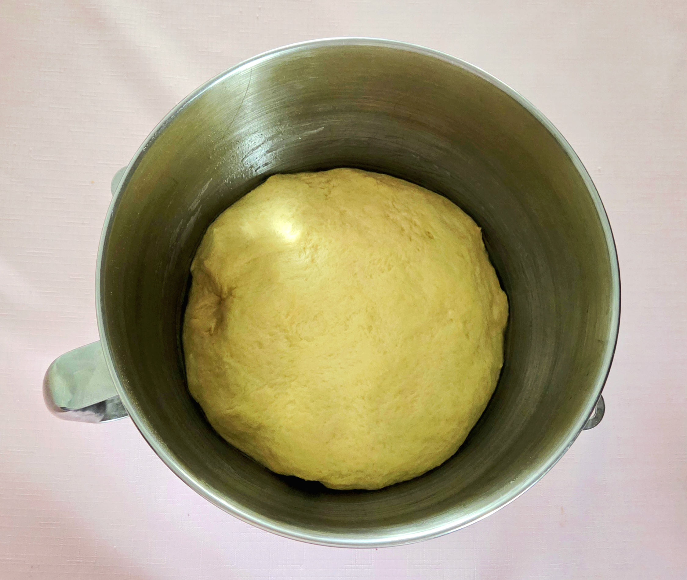 Slice 8-10 medium oranges and squeeze out 1 cup worth of orange juice into a liquid measuring cup. Yes, this will take a long, tedious time, but your future self will be thanking you for putting in the extra effort for the sake of better flavor! Pour the orange juice, water, and cooled melted butter into the dry goods. Using the dough hook attachment, knead the dough in the stand mixer on level 2 until a tacky but not sticky dough comes together, then knead it for 5 minutes more.