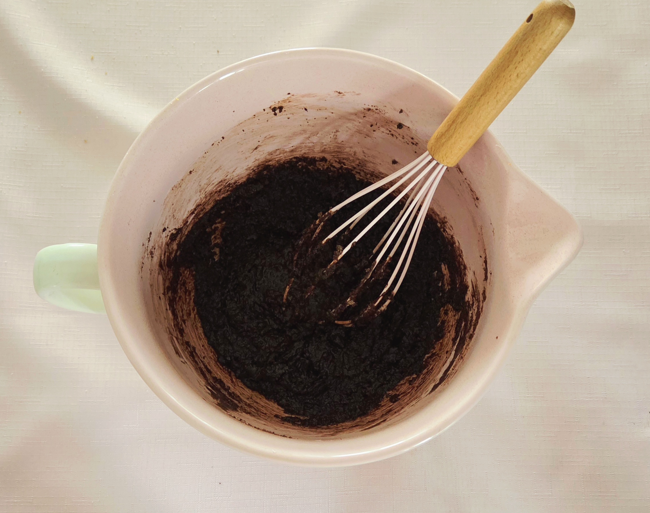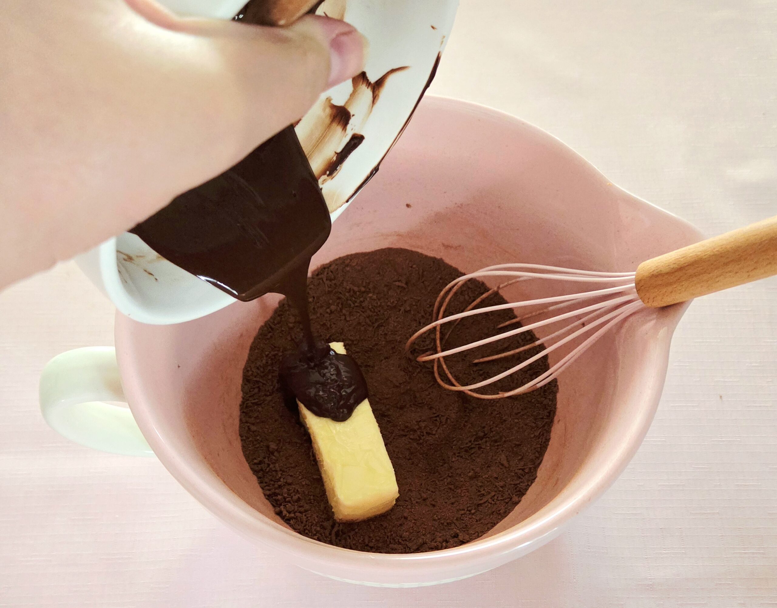 - Add softened butter and the melted chocolate into the orange spice sugar, and whisk them together until combined. Set the filling aside.
