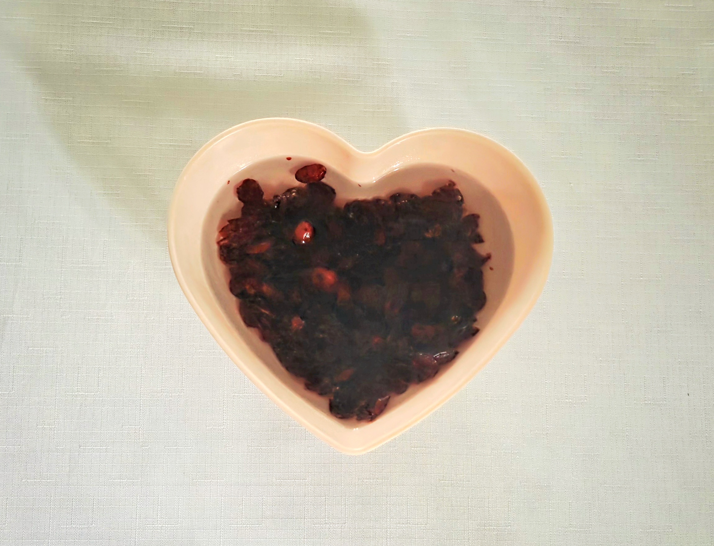 1. Begin by hydrating the cranberries. Place the dried cranberries into a heat safe bowl and bring 2 cups of water to a boil. Once the water is boiling, pour it onto the cranberries, covering them entirely. Set these aside for 5-10 minutes.