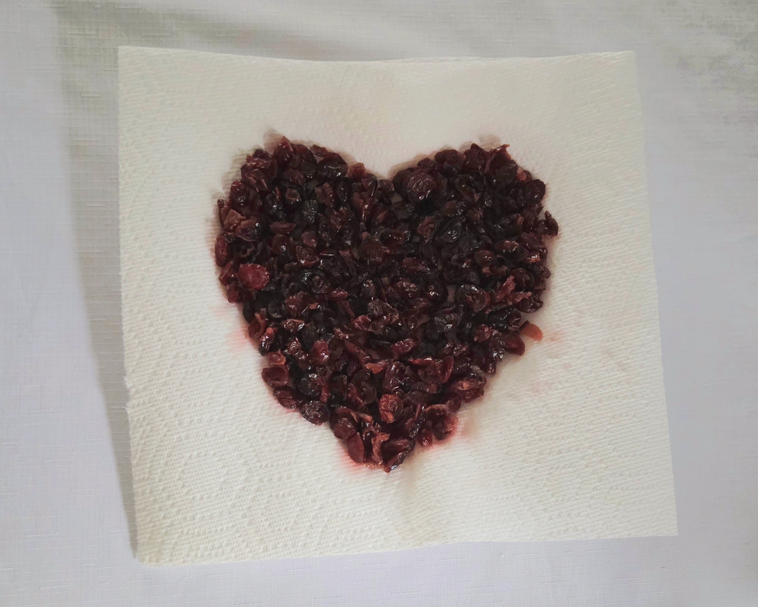2. Line a plate with a thick layer of paper towels. Drain the cranberries, then spread them out on the lined plate. Pat them dry with another layer of paper towels and stick them in the fridge to chill for a few minutes.