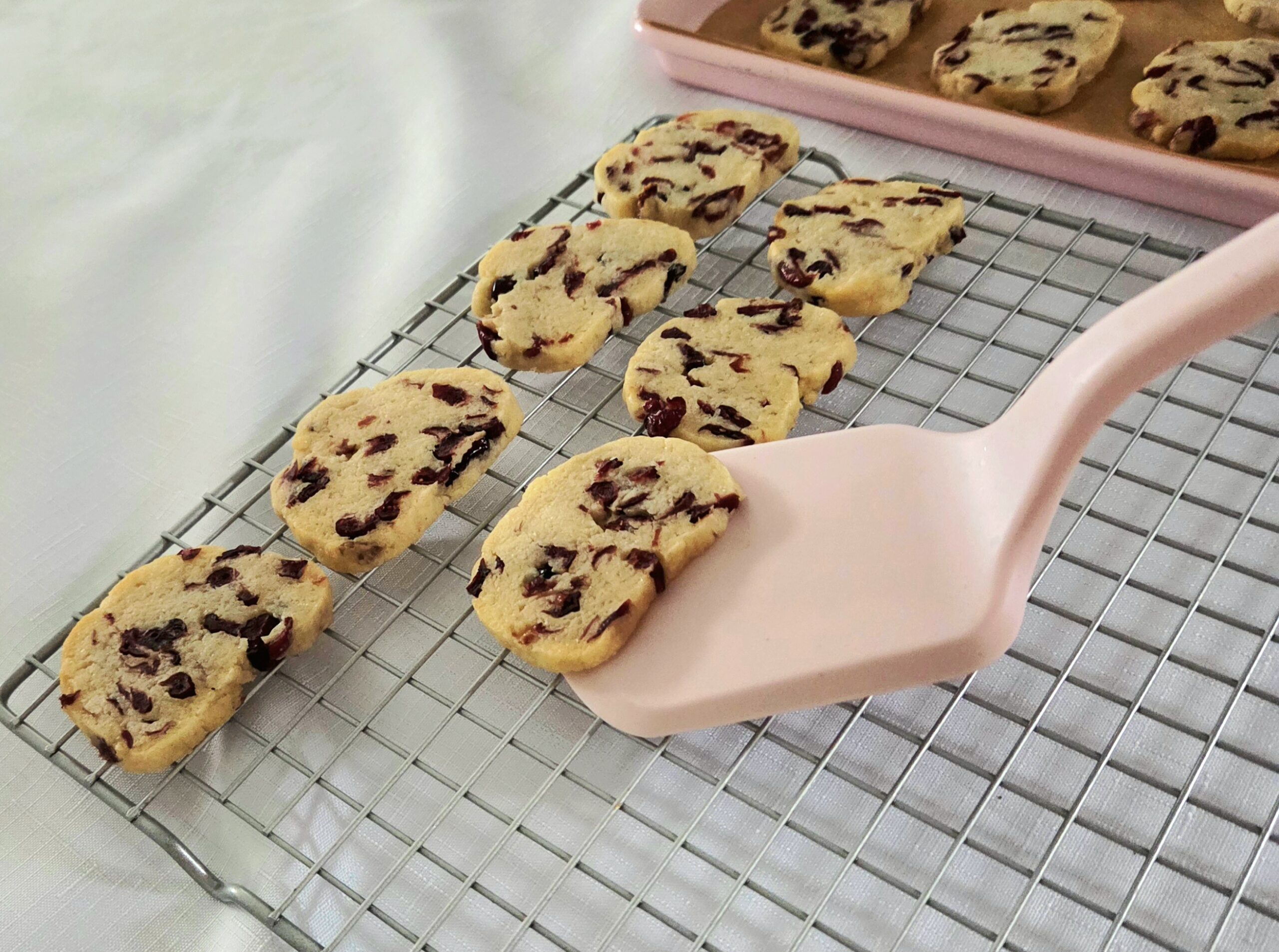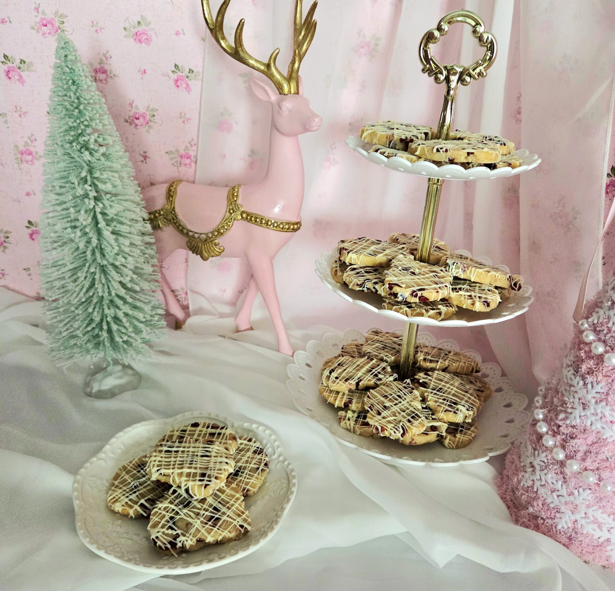 Part of that boldness, however, is an incredibly mouth-puckeringly tart flavor. To bake with cranberries in a way that people will actually want to eat them, they desperately need sweetness to balance. What better ultra-sweet accompaniment than white chocolate? It’s buttery and smooth, with a creamy ivory color that beautifully contrasts that bright red berry. The perfect combination for these crisp on the outside, soft on the inside shortbread cookies. So simple to pull together, and so pretty for your holiday cookie swap.