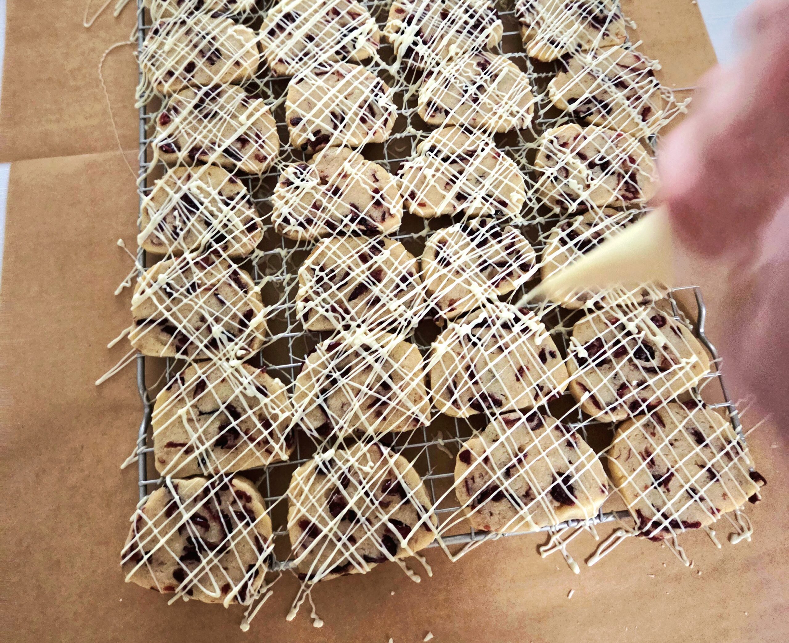 • If you’d prefer, you can dip the cookies into chocolate rather than drizzle it over. A beautiful different look! Though be warned, it will take more chocolate to dip every cookie.