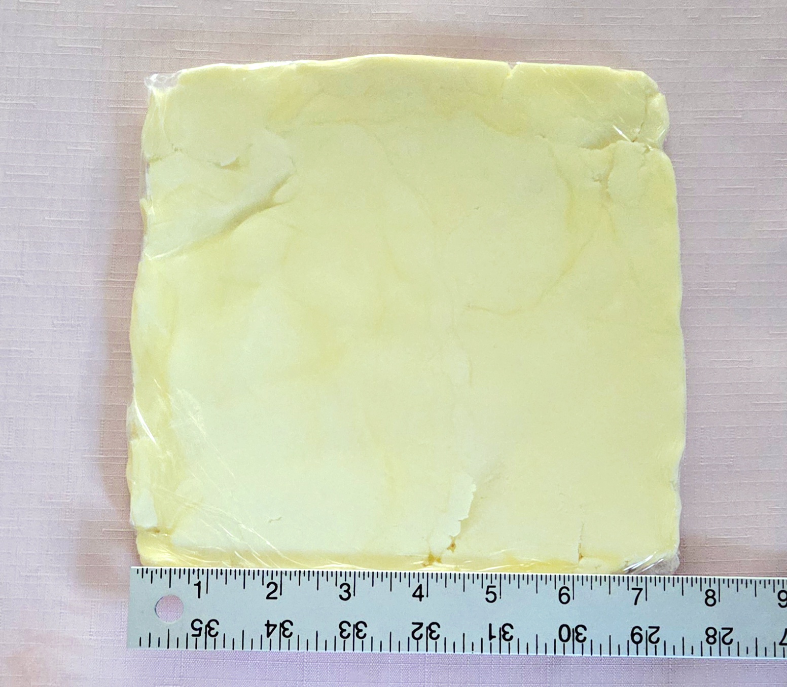 Once the butter is pliable, roll the butter out to an approximately 7 x 7 inch square and wrap it airtight in plastic wrap. Place the beurrage in the fridge until it’s needed.