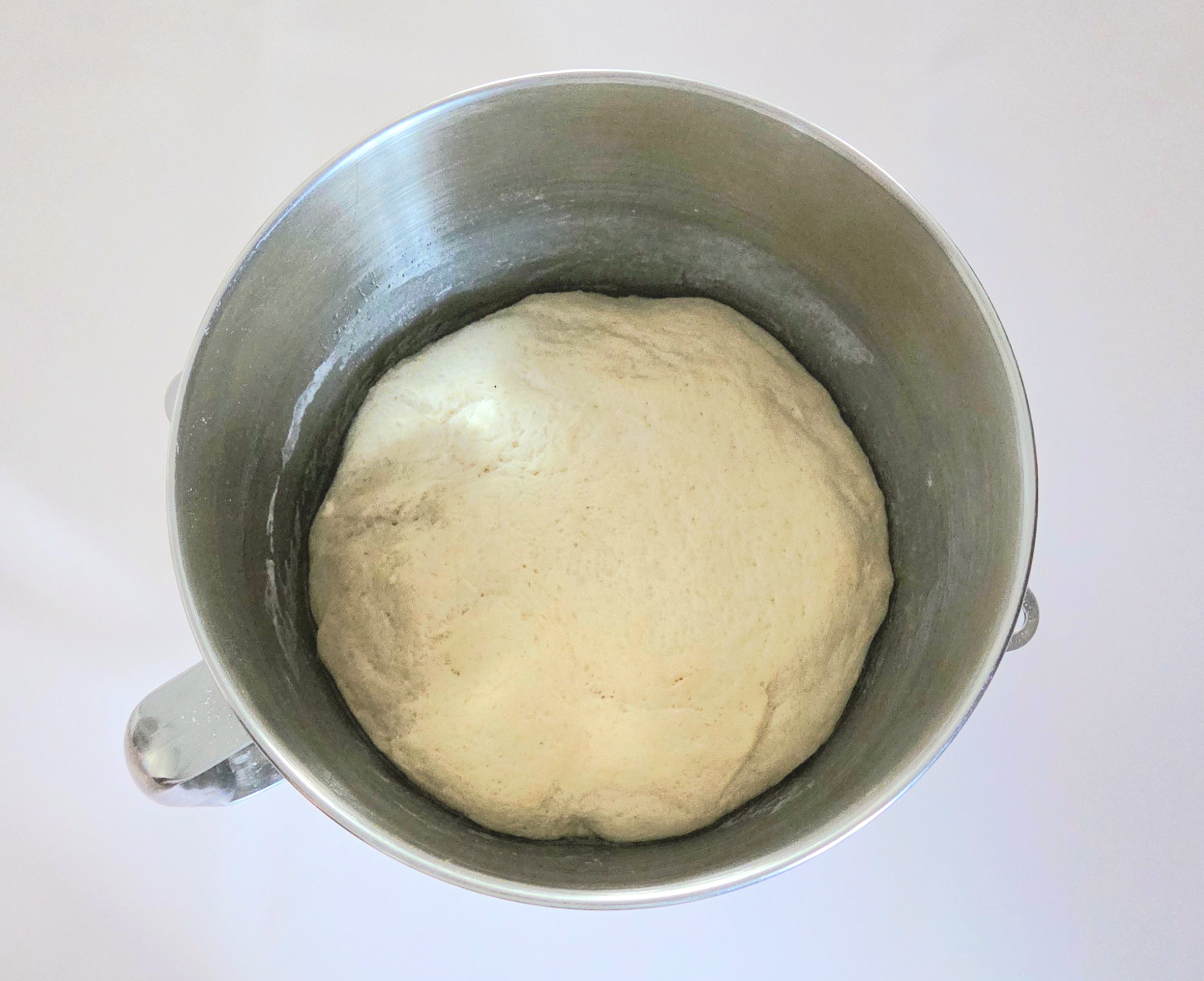 - Temporarily place the completed dough onto a clean counter and lightly grease the inside of the mixer bowl with a neutral oil. Ball the dough and place it into the greased bowl, turning it several times to coat it lightly in oil. Cover the top of the bowl in plastic wrap and place it in a turned-off oven (see the FAQs and Science section) for 1-2 hours, or until doubled in size.