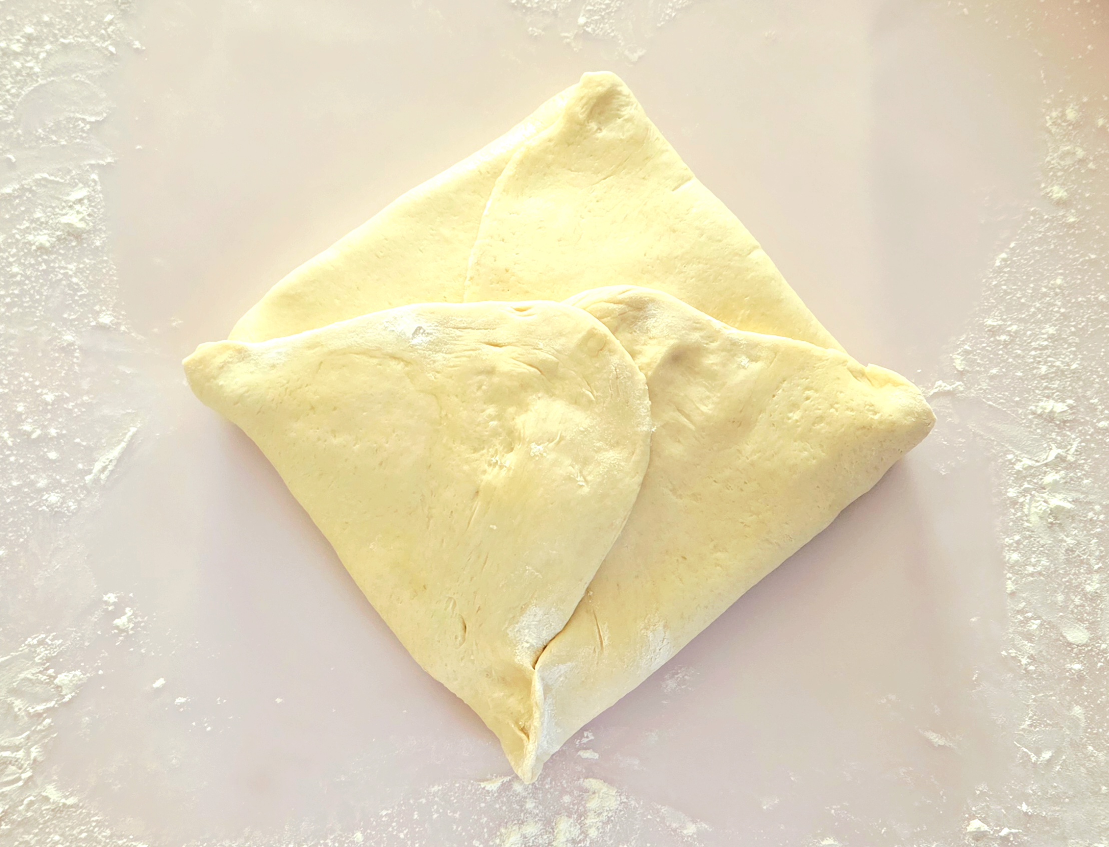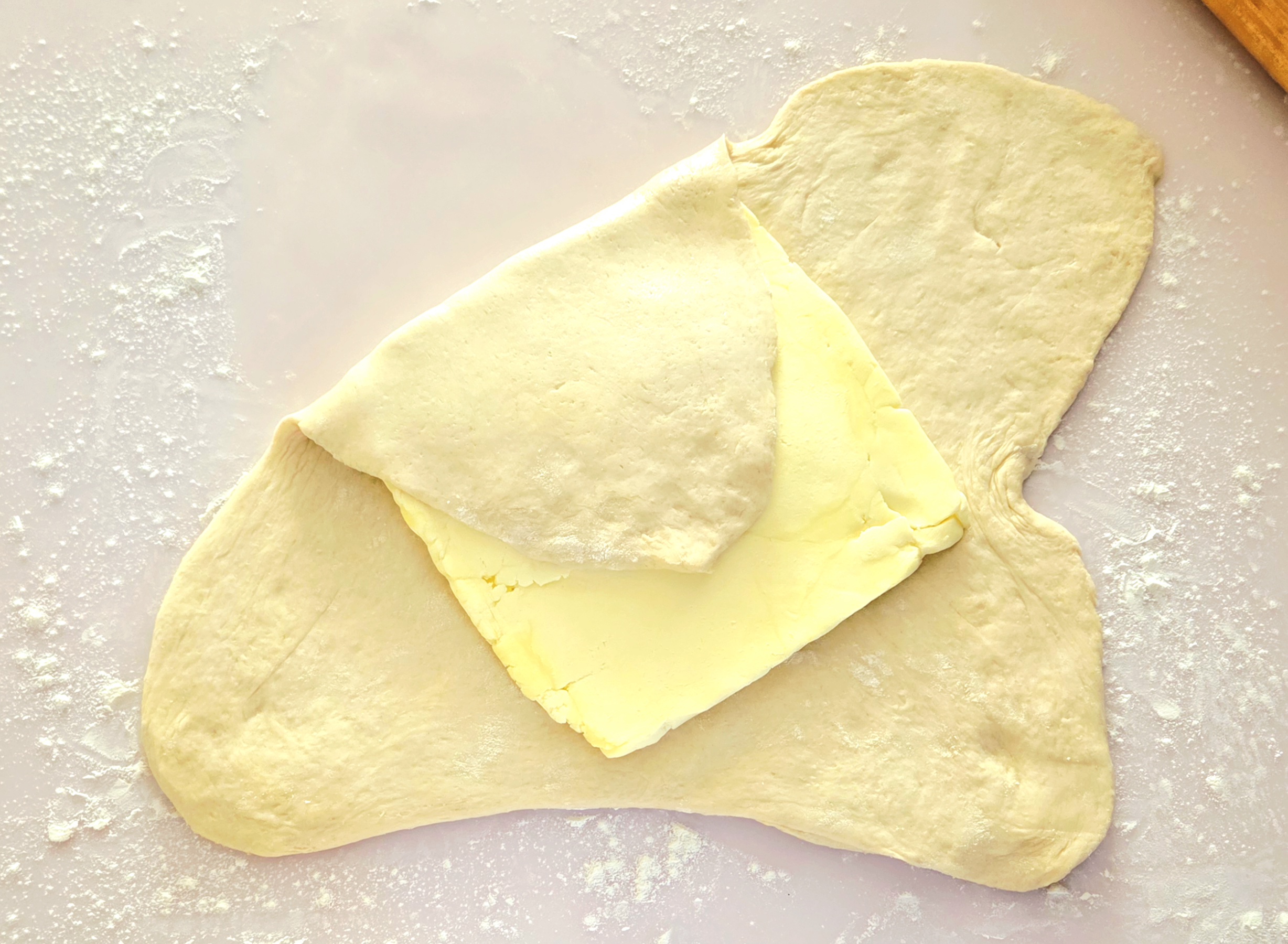 Unwrap the beurrage and place it diagonally in the center of the dough. Fold each corner of dough down and seal the edges together, to enclose the butter.