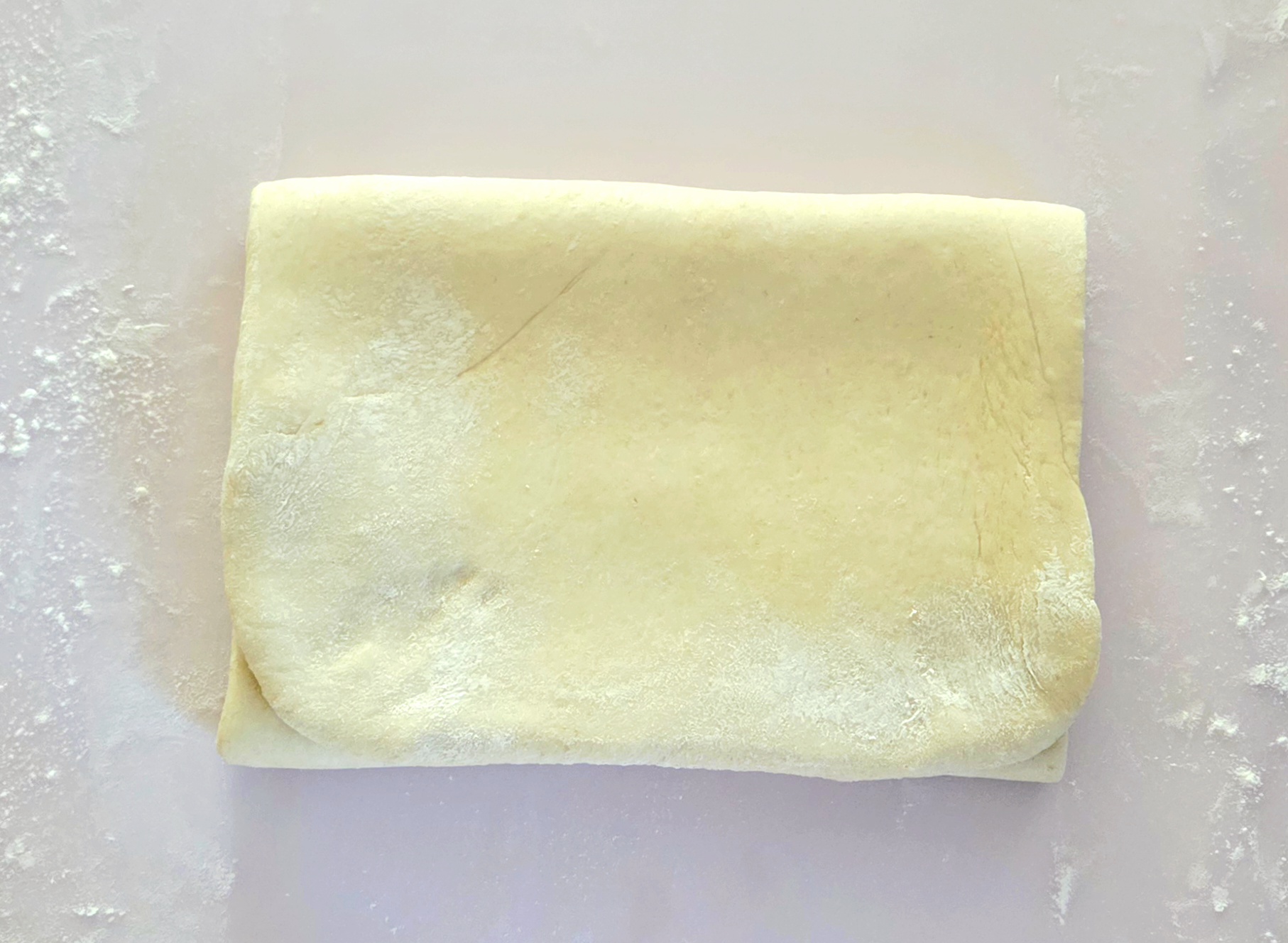 Fold the rectangle into thirds like a letter. Wrap it airtight in plastic and place it in the fridge to chill for 30 minutes.