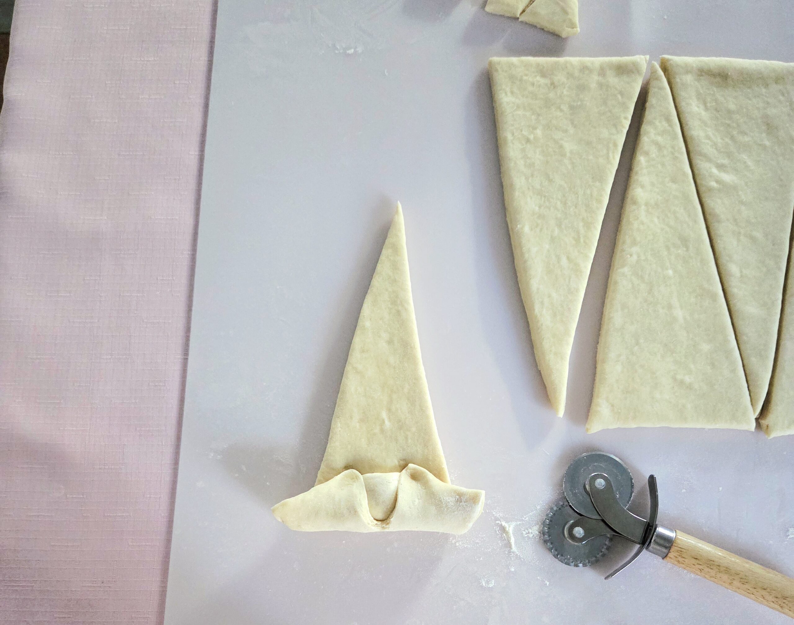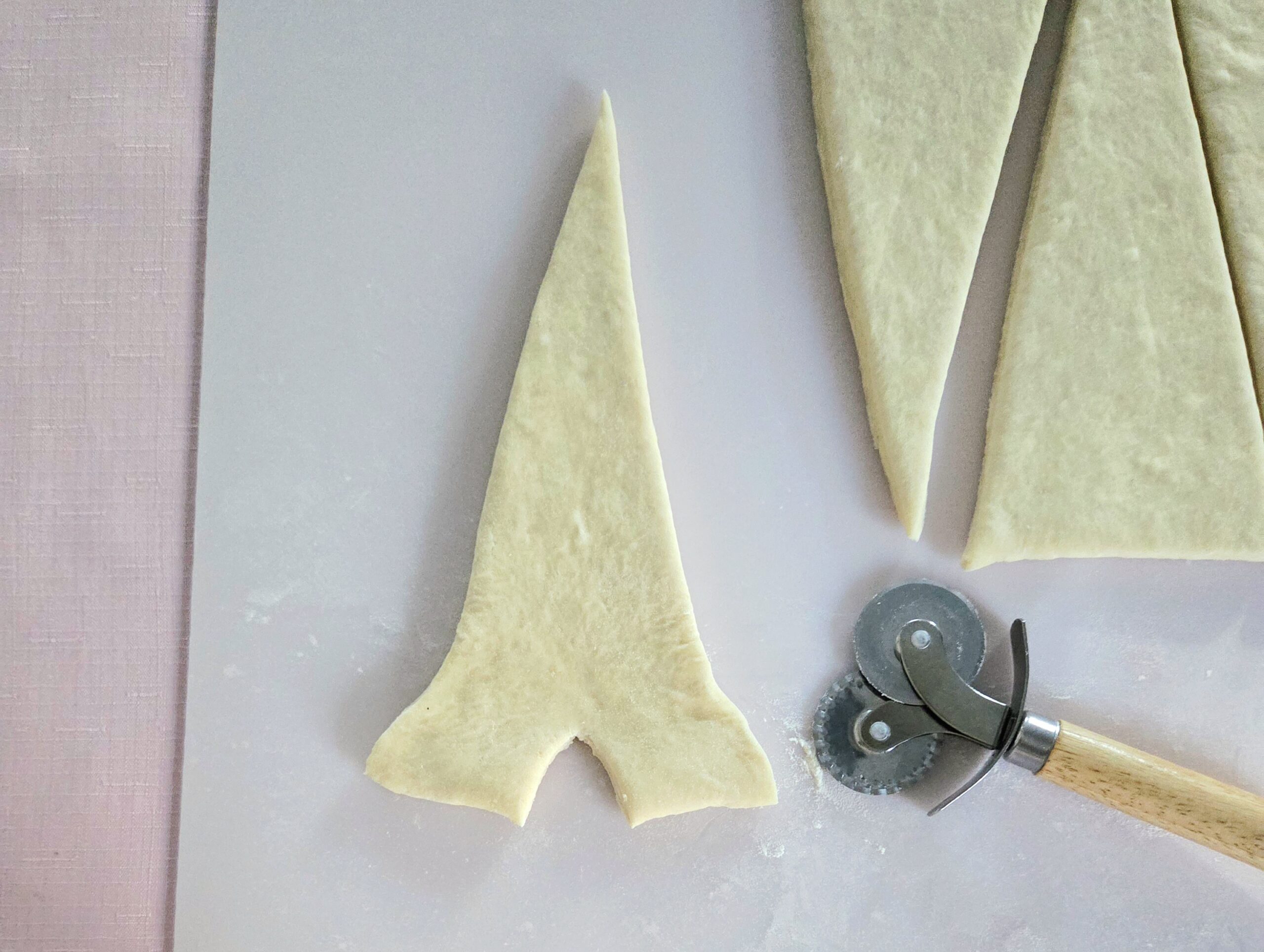 Cut the two half-triangles on either end into 6 relatively equal pieces. No wasted dough in this house!