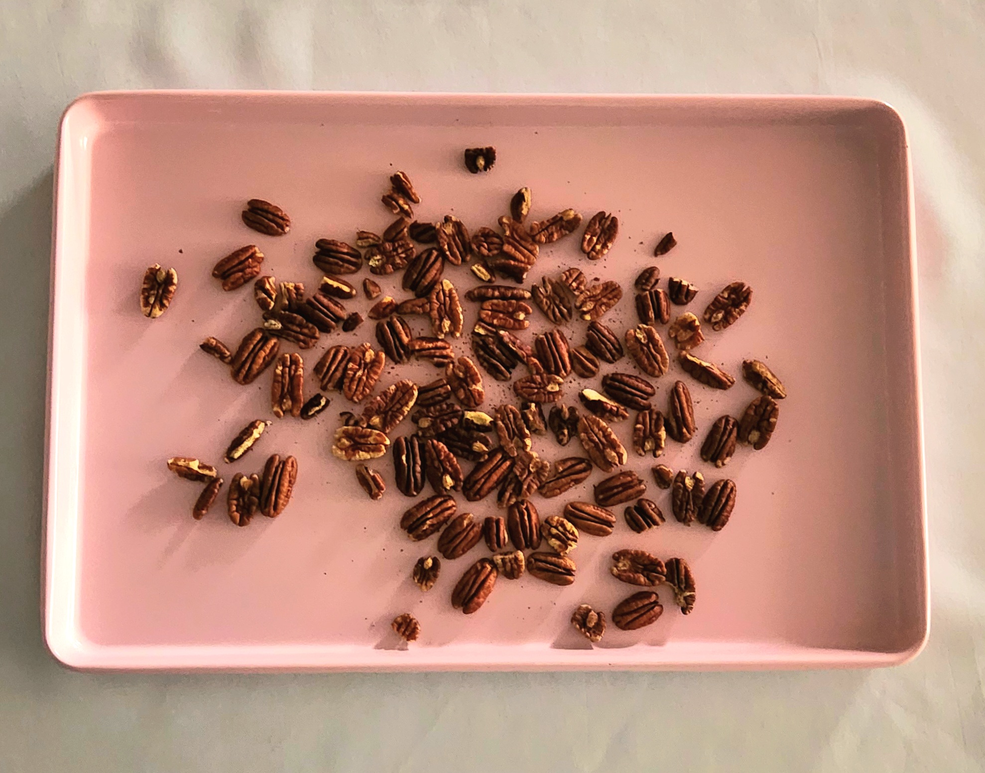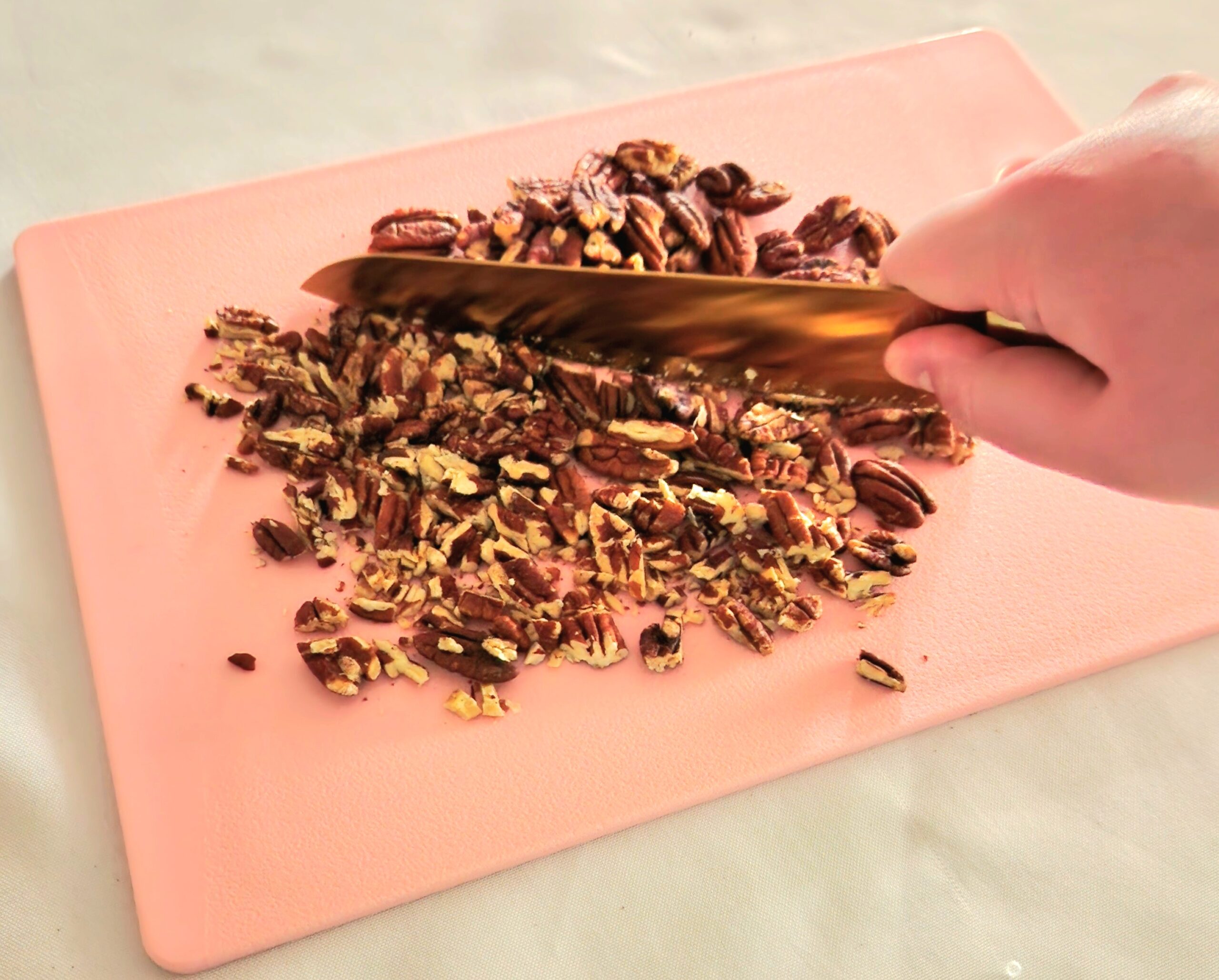 - Chop the mostly cooled toasted pecans into small pieces. Set them aside.
