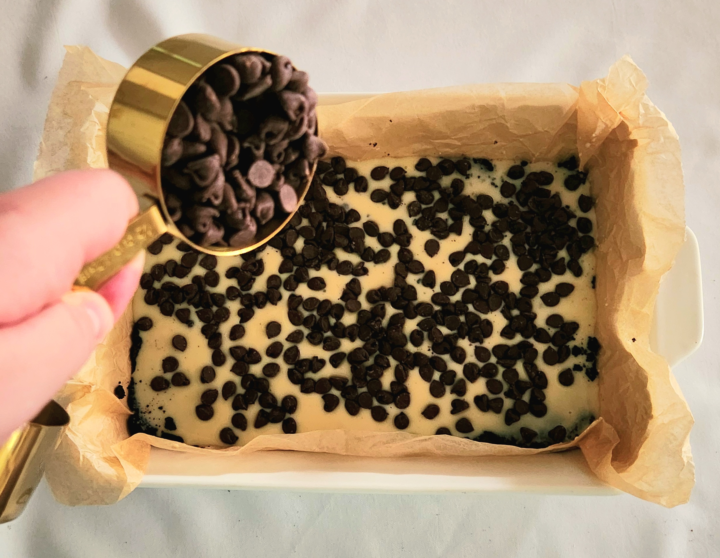 Preheat the oven to 350F and prepare the baking dish. Line a 9×13 inch baking dish with parchment paper, set it aside. The parchment paper will make it much easier to remove the bars in the end. There’s honestly nothing more frustrating than when you’ve made it through the full baking journey, but then it sticks to the pan. Parchment paper will forever be on my necessary baking tools list, for that reason.