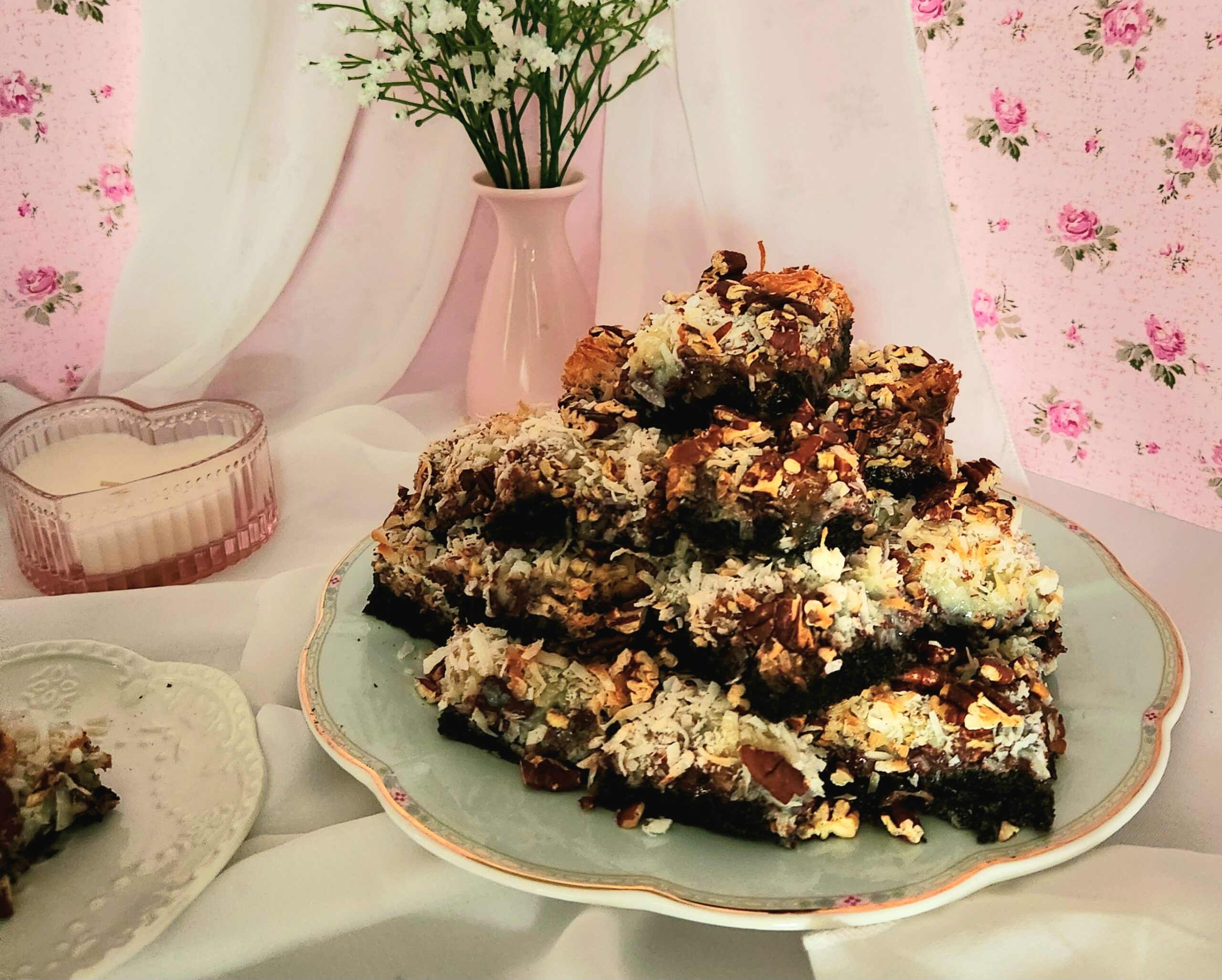As an American with exquisite American tastes in food and desserts alike, I love a good 7 layer bar. They’re sweet, simple, and dripping with nostalgia. Like I’m sure is true for a lot of you, 7 layer bars were one of those staple desserts that adults let me help throw together when I was a kid. Just like they let me help make dirt cups (chocolate pudding, oreos, and gummy worms) or dessert sushi (fruit roll ups, rice krispie treats, and some kind of gummy center). They’re quick, there’s not a lot of prep work, and it’s something to keep a child occupied for half an hour. Something to bring on a picnic, bring to a potluck, bring to a holiday.