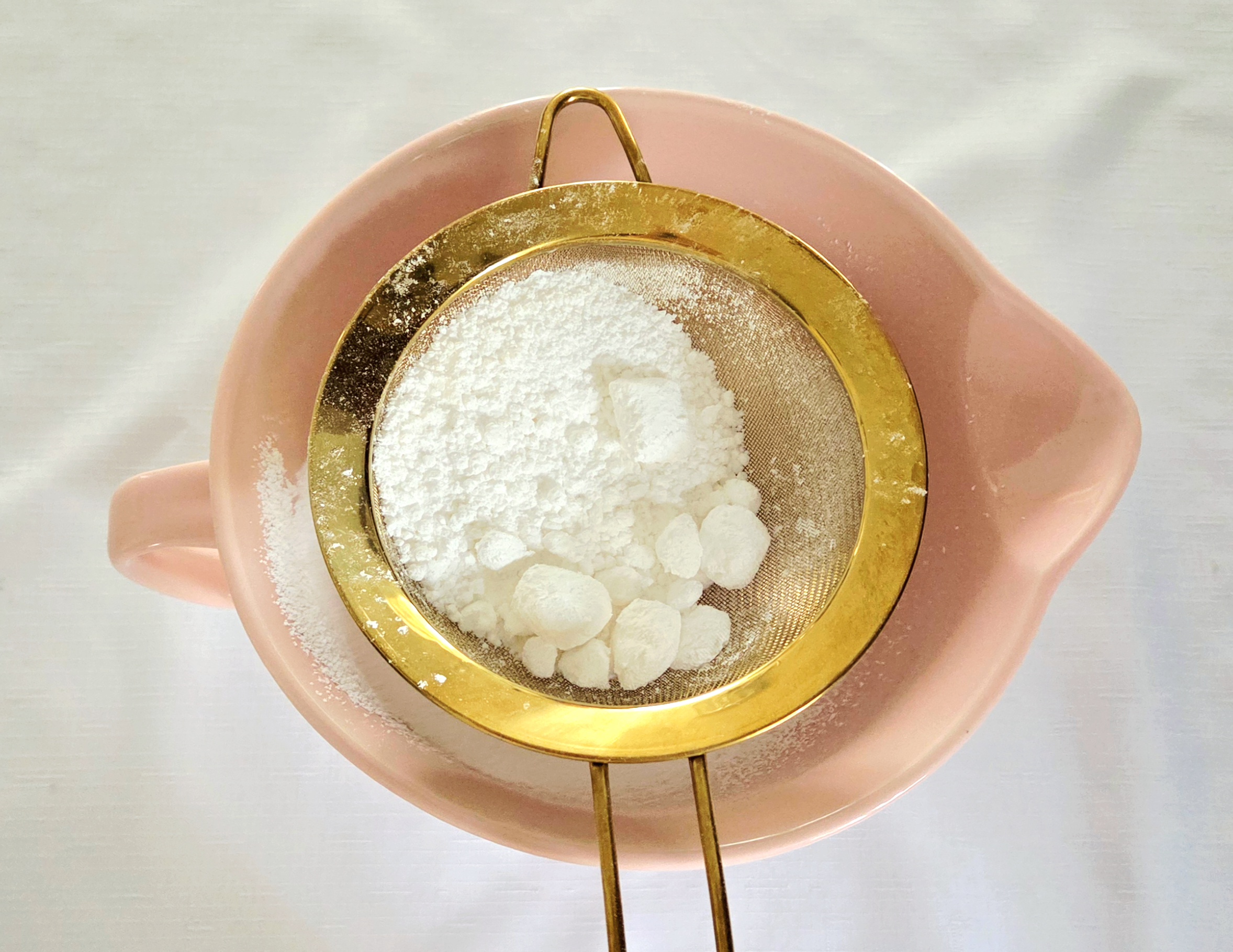 1. Wait until the bundts have completely come down to room temperature, then mix the glaze. In a medium mixing bowl, sift the powdered sugar and salt together.