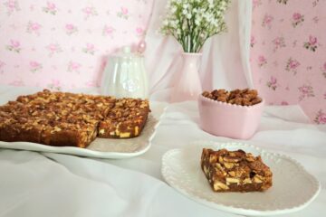 Allow the blondies to come completely down to room temperature, then transfer them to a cutting board. Slice an even 4×4 grid.