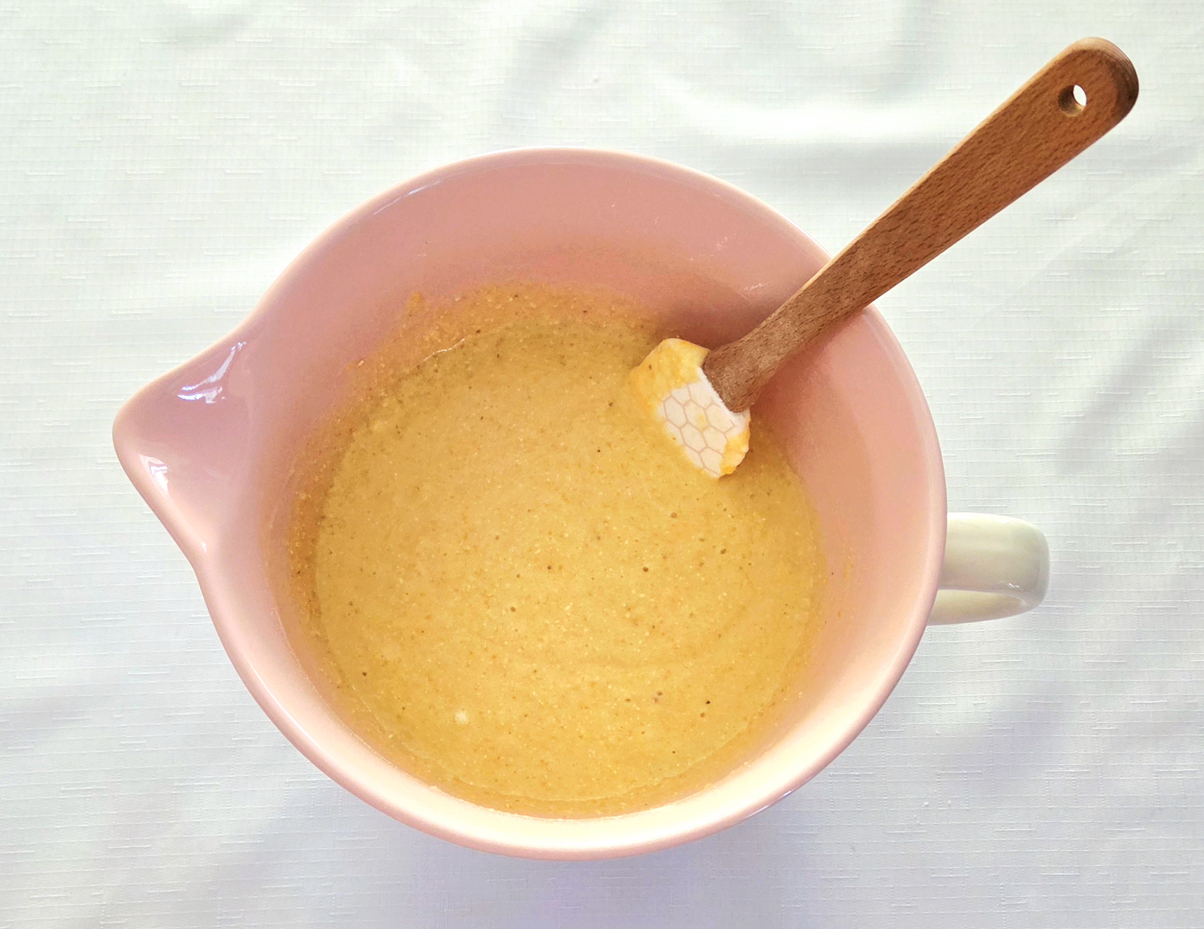 Just like with the egg, we warm the milk to keep everything at a similar temperature. That way, the batter is easier to emulsify!