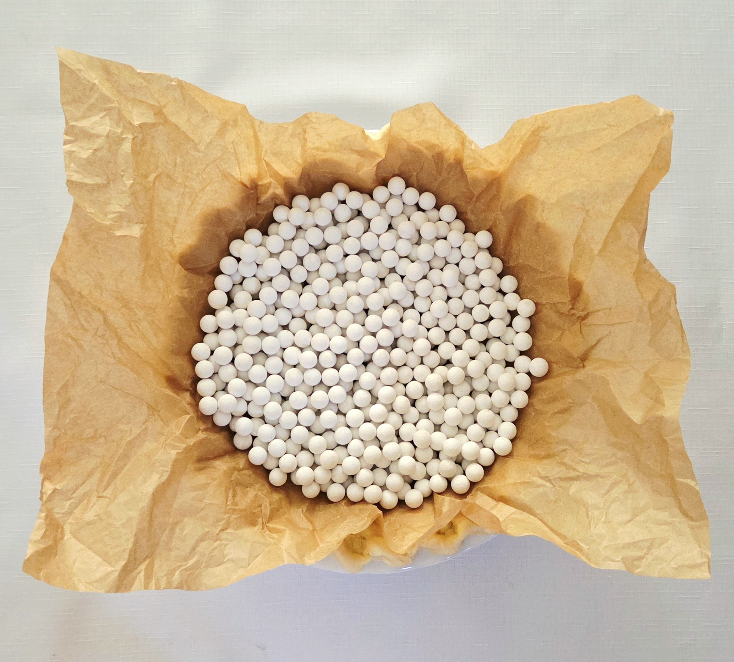 Grab a piece of parchment paper large enough to fill the entire inside of the pie dish, including up the rim, and crumple it into a ball. Uncrumple it and place it into the dough lined pie dish, then fill the parchment with either pie weights, dried beans, or dried rice, enough so that the dish is completely full.