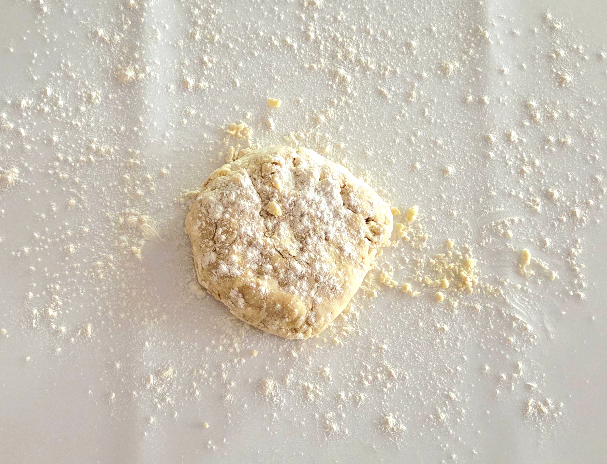 - Take out one portion of dough and unwrap it. Lightly flour a clean counter, place the disc in the center, and lightly flour the top of the disc. Using a rolling pin, roll out the dough into a circle with a 13 inch diameter. If at any point the dough starts to anything, gently peel it away and add a little more flour.